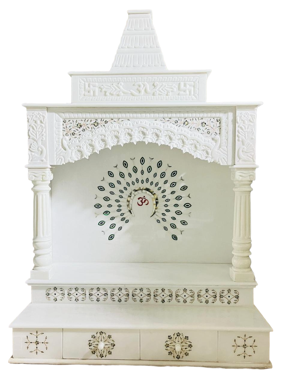 Enhance your spiritual space with this White Marble Mandir, crafted from high-quality marble for lasting beauty and durability. Its elegant design features intricate carvings and a polished finish, making it perfect for any home. Spacious shelves allow you to place idols, diyas, and pooja essentials with ease. Ideal for daily prayers and special occasions, this mandir blends tradition with style.